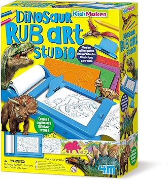Have fun creating perfect dinosaur art on this 8-metre-long paper scroll. Create an artistic prehistoric scene by rubbing the crayon over the dinosaur art plates! Change the plates and roll the paper out to make a continuous scene or tear off each scene to have individual dinosaurs.