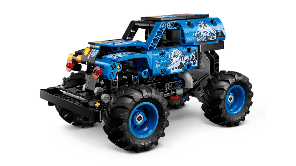 - MONSTER JAM™ GRAVE DIGGER™ BUILDING TOY – Launch into fun with this LEGO® Technic™ Monster Jam Grave Digger Fire and Ice (42219) pull-back truck for boys, girls and kids ages 7 years old and up
