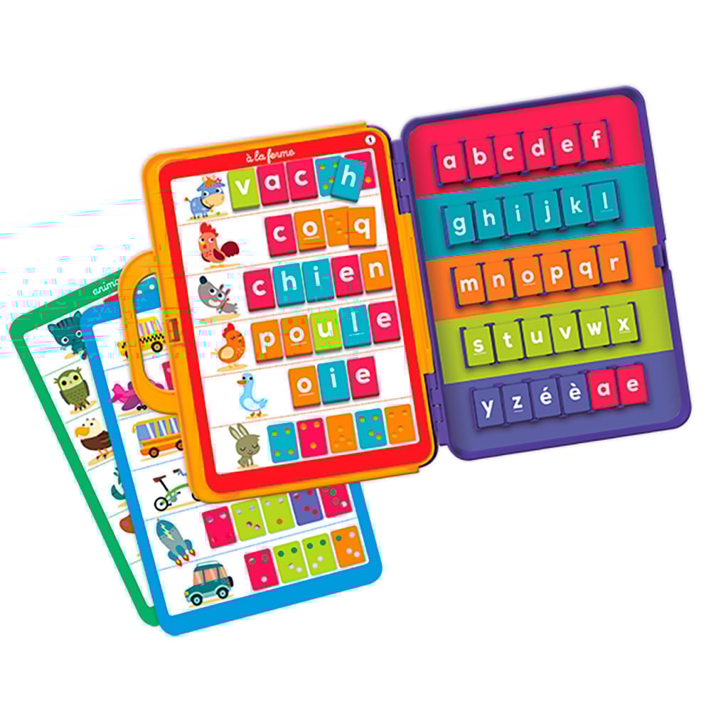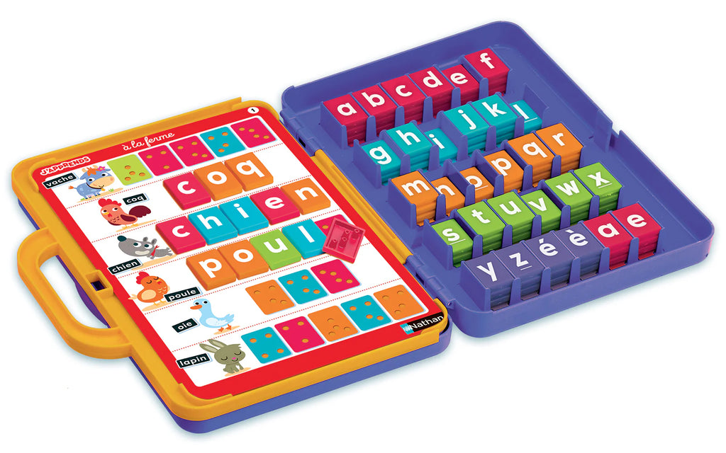 En faisant les exercices que propose «J'apprends à lire», l'enfant saura bientôt lire et écrire des mots qui ont été soigneusement sélectionnés. La couleur des lettres aide l'enfant à choisir celle qui convient. Système auto-correcteur: grâce aux codes au revers des lettres, l'enfant ne peut placer que la bonne lettre dans chaque case.