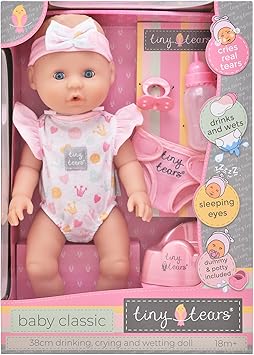 TINY TEARS: The original drinking, tearing and wetting function doll.