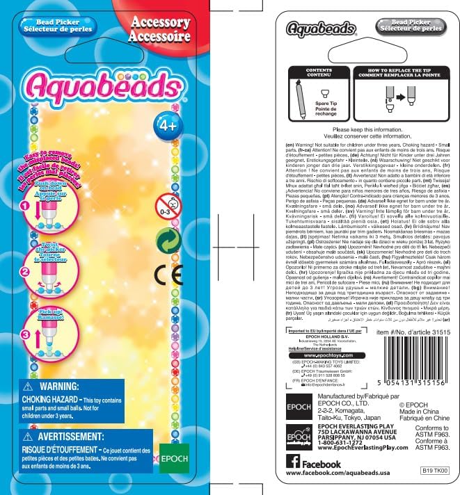 Aquabeads is the original water-activated bead craft kit! since 2004, children throughout the world have created millions of Aquabeads designs. Just push down on the bead with this clever bead picker, twist, then pick up stray beads. The easy way to remove misplaced beads whilst creating more designs. For children ages 4 and up.