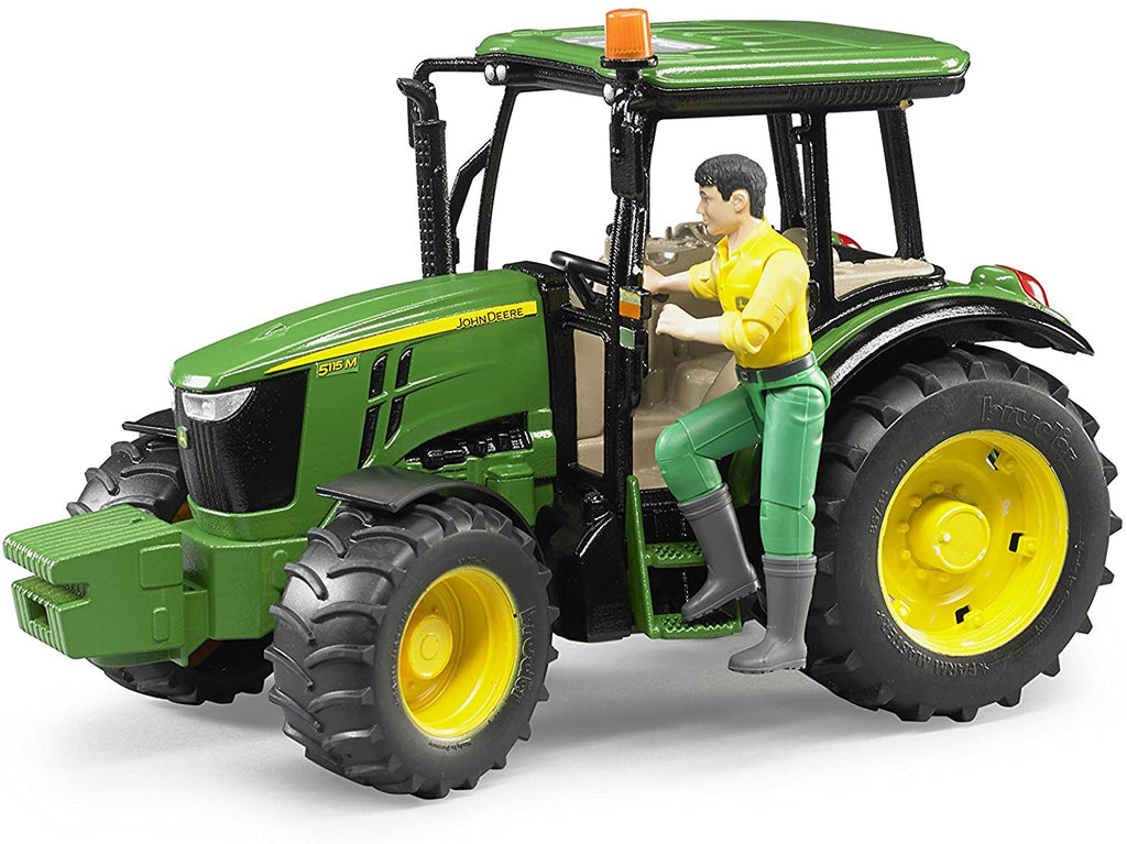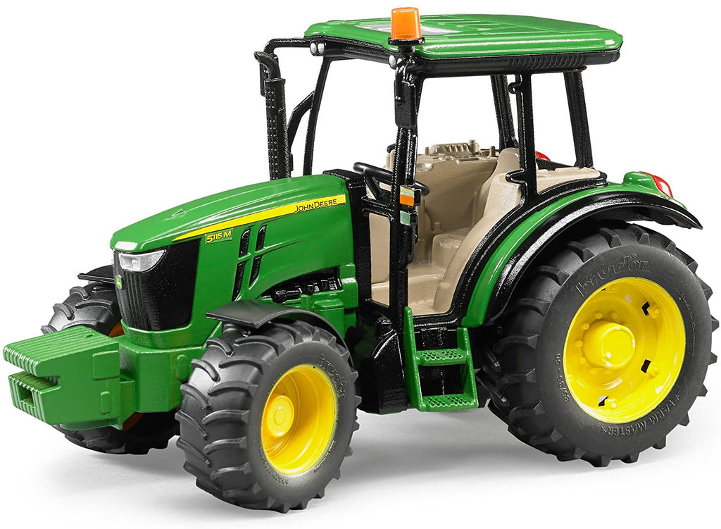 The John Deere 5115M is the star of the compact tractor class on the farm. The front axle is steerable through an attachable rod extension that can be added through the sliding roof. The separately available slip-on front loader (item no. 02319) enhances the tractor's functionality even more. All trailers and trailed implements of the Profi series can be combined with the John Deere 5115M.
