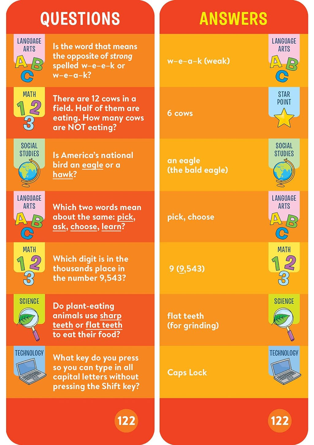 - 1,000 questions and answers covering math, language arts, science, and more
