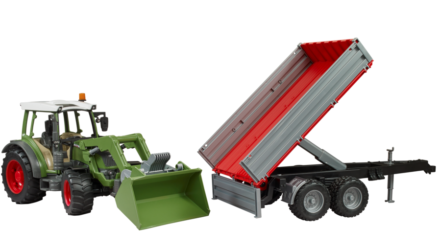 The Fendt Vario 211 features everything farmers need for successful results. Thanks to its compact dimensions and a spacious cab, it is not only comfortable, but also the perfect working companion for all conditions. This compact yet very powerful tractor is the latest addition to BRUDER’s extensive fleet of tractors, which is well-known for its true-to-life details. Of course, this tractor also shares features typical of its stablemates, such as the off-road front axle or the additional drag link. The small, easily platform gate trailer and the fully functioning BRUDER slip-on front loader are therefore ideal for realistically recreating this tractor's use in viticulture and fruit growing, for example. This tractor can also be combined with almost all agricultural attachments from the BRUDER range.