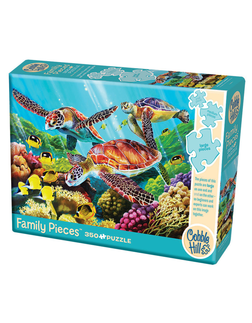 The sea turtles are coming in with the Molokini Current in this colourful Family Pieces 350 puzzle.
