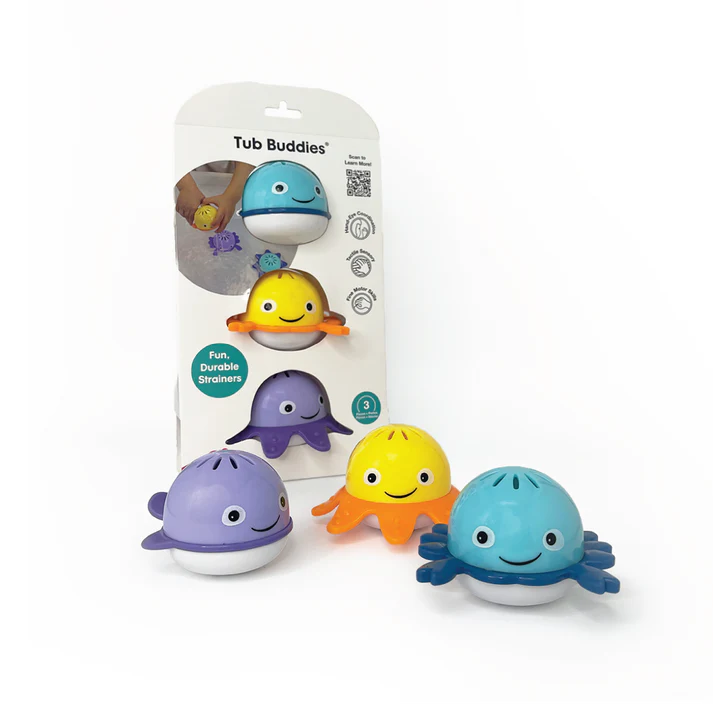 With floating heads and friendly faces, this bath toy keeps babies entertained during bath time. Great for hand-eye coordination and fine motor skills, the Edushape Tub Buddies are a relaxing tub time activity for little ones who love to make a splash!