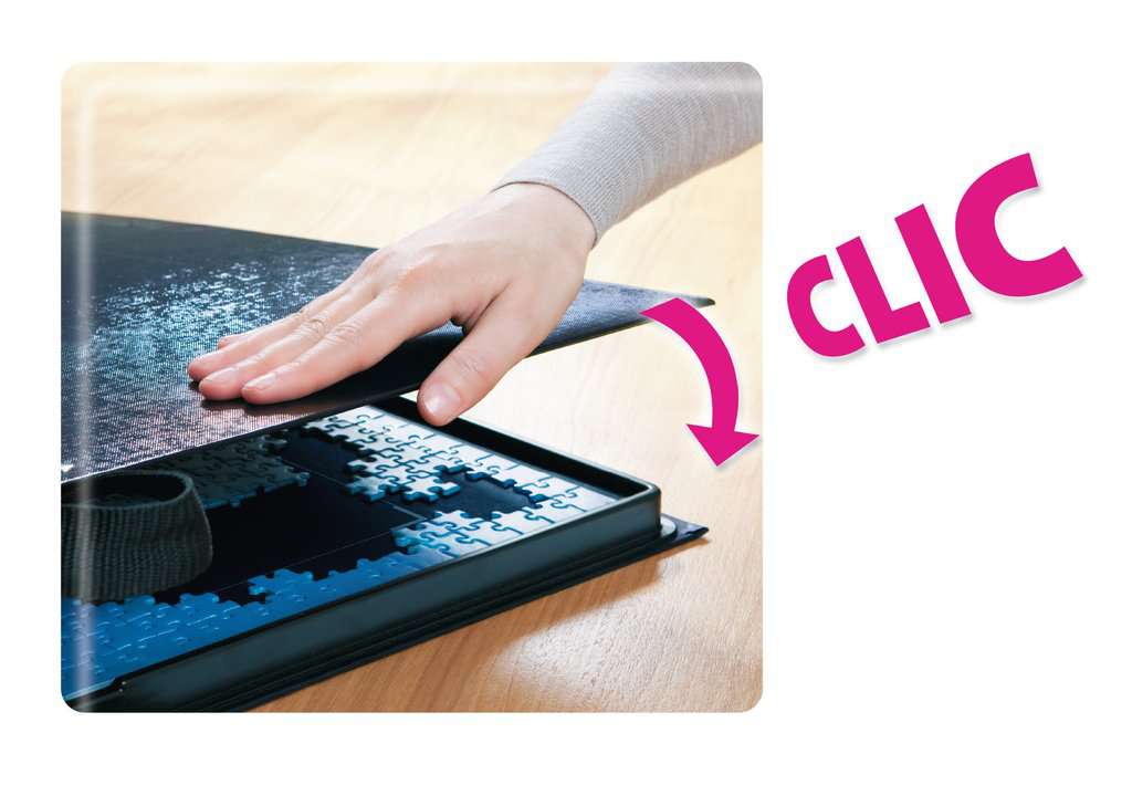 Easily sort pieces within the five integrated trays then build your puzzle on the included puzzle base - it will easily fit 500 and 1000 piece puzzles. For convenient storage and transport of your puzzle, simply place the puzzle base on the sorting trays and snap the lid closed. Your loose pieces will stay in their compartments and your in-progress puzzle stays in place - even when upright!