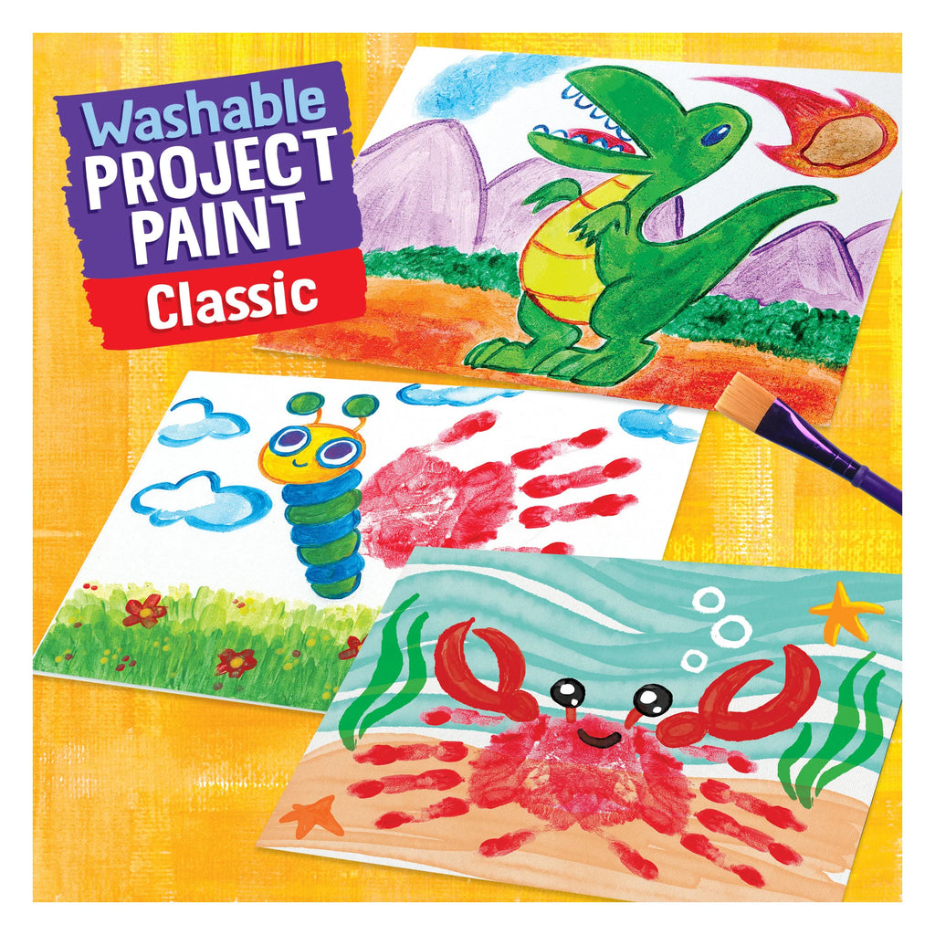 Let your child’s imagination run wild without worrying about the mess while adding a vibrant look to their creative masterpieces. Amp up school projects and artistic endeavours with high-quality results - Crayola washable paints are designed with a focus on true colour and high performance. Crayola paint won’t drip readily from brushes and won’t separate; ensuring that only the paint you want on the page actually gets there. With these paints children can express, create, and connect with colour. Watch kids' confidence and independence grow as they learn through colourful play.