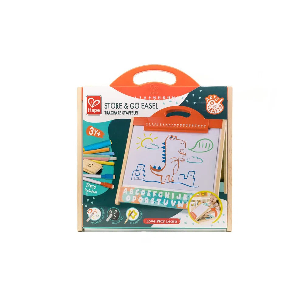 - Chalks, pens and other accessories can be stored and carried inside the closed easel
