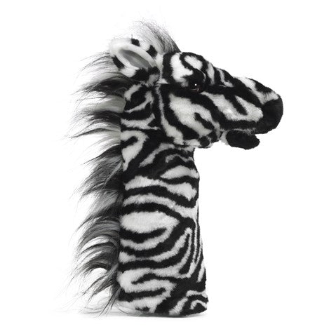 The Zebra Stage Puppet features an easily animated mouth and lots of expression! Design details include a leatherette nose, soft vintage-look plush with beautiful striping and a distinctive black and white mane.