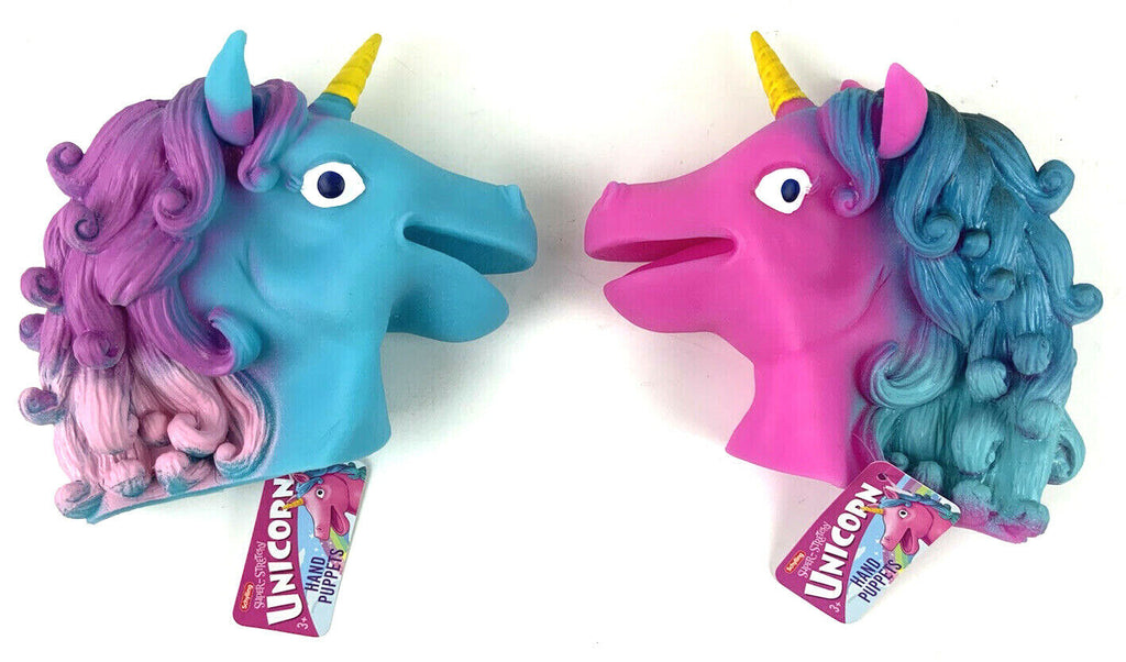 Play in an imaginary world of glittery rainbows and magical creatures with Schylling’s Unicorn super stretchy puppets. Make endless expressions and hours of fun!