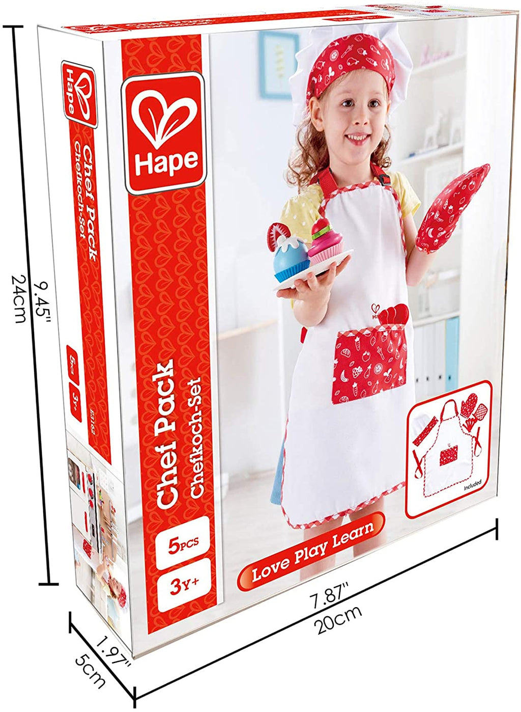 Look the part as you whip up wonderful meals with this play chef set. Includes hat, apron, oven mitt, potholder, and five measuring spoons.