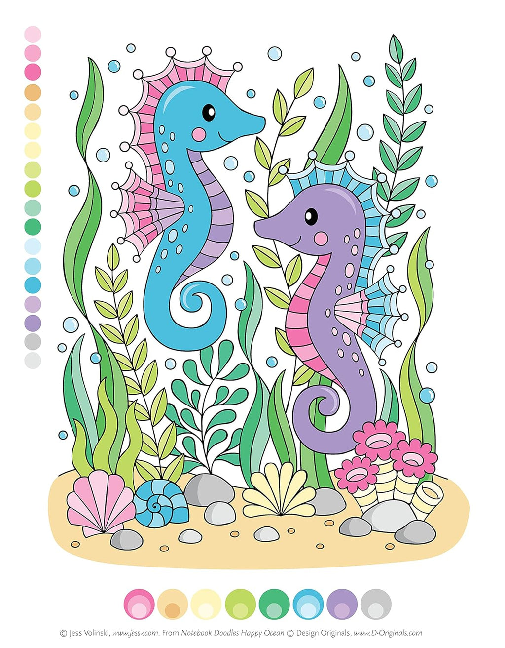 Dive deep into the sea with Notebook Doodles Happy Ocean! This adventurous and engaging colouring book is filled with 32 charming designs of whales, sea turtles, dolphins, starfish, and other amazing sea creatures from talented artist Jess Volinski. With empowering art activities for young girls, Jess also includes fill-in prompts, instructions on basic colouring techniques, fully coloured examples, and motivational quotes to go with every design. Watercolors, coloured pencils, markers, crayons, and gel pens will all look stunning on archival-grade, acid-free, 200-year paper. Each page is perforated, so when it's finished, it can easily be removed to hang up or give as a gift.