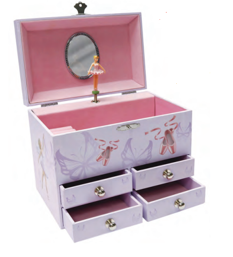 - COMPARTMENTS & DRAWER: Ideal for storing girl's cherished items including earrings, pins and small bracelets , Elegant and charming Ballerina merry-go-round, cozy velvet lining and mirror in top.