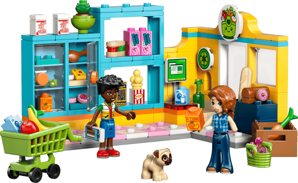 - SHOPPING PRETEND PLAY – The LEGO® Friends Heartlake City Convenience Store (42680) lets kids imagine fun trips to the mini-mart, stock the shelves, go shopping, pay for produce and recycle