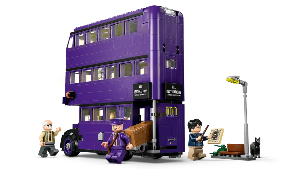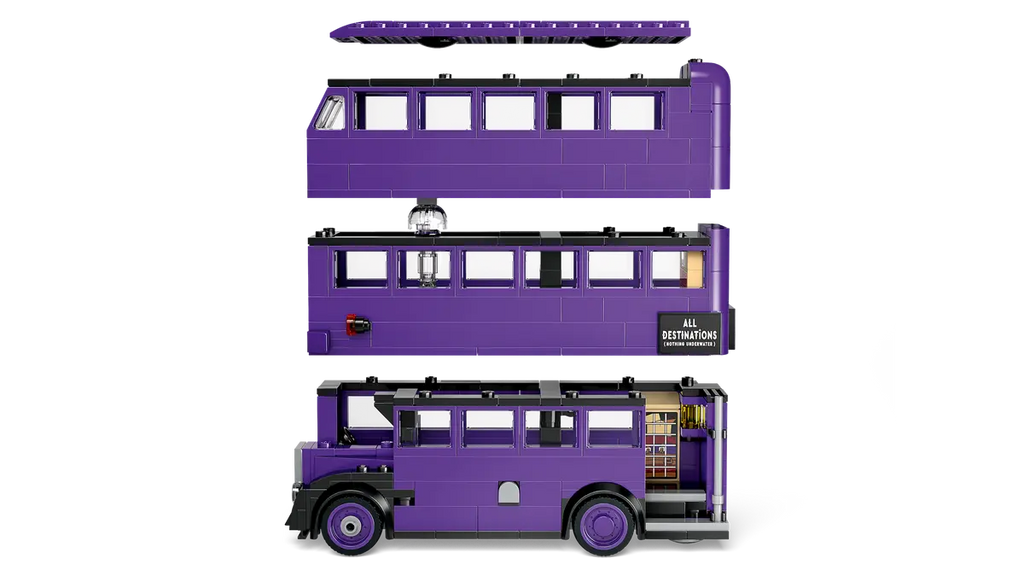 - The most detailed LEGO® brick model of the Knight Bus™ – The upper levels of the bus can be detached for easy access to the interior, which features moving beds and a swinging chandelier
