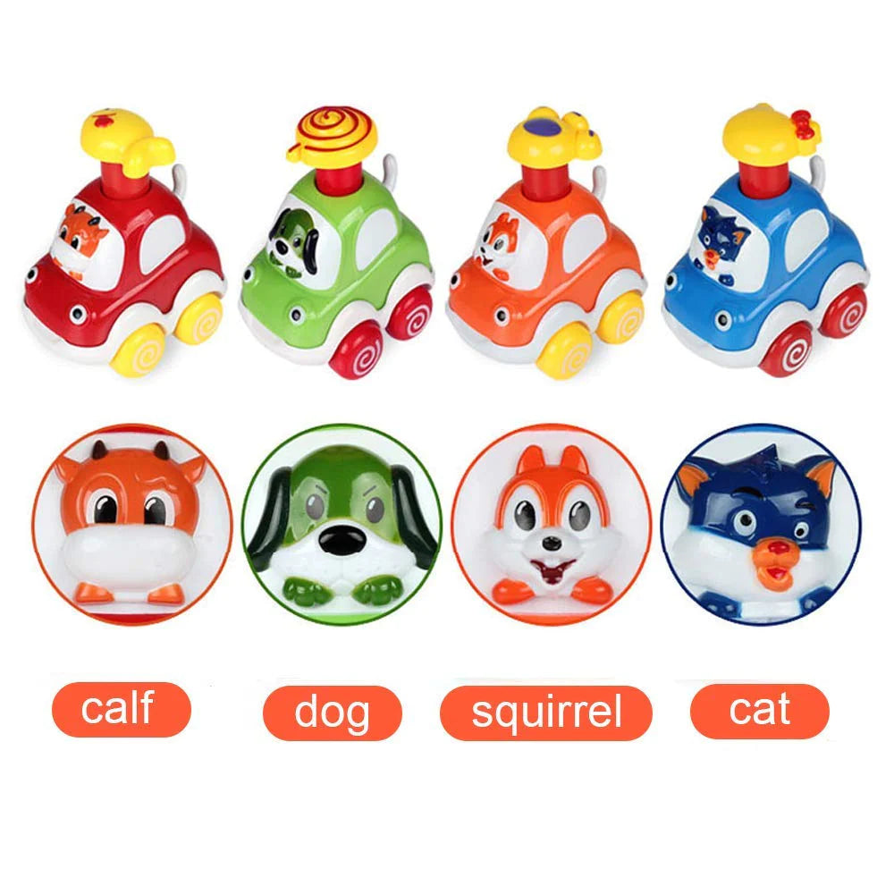 Mighty Racer features four different animals. Push the button on the top and watch them race!