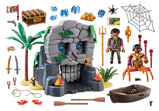 PLAYMOBIL Skull Island is full of adventure and hidden dangers! Brave pirates venture onto the island in search of legendary treasures, but only the boldest will succeed. This playset includes a Skull Island, a pirate, and the fearsome Crab Deeper, ready to protect the treasure.