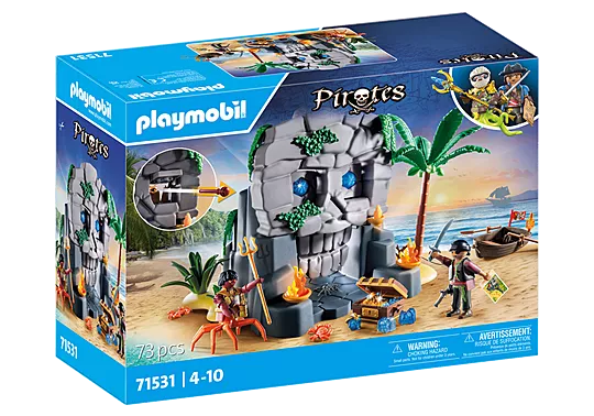 Dare to discover the treasure hidden on PLAYMOBIL Skull Island! This exciting pirate playset includes a detailed Skull Island with functional cannons, a brave pirate, and the fierce Crab Deeper. The island is filled with secret traps, from vanishing crystal eyes to firing cannons. Kids aged 4 and up will love creating thrilling pirate adventures with hidden treasures and dangerous obstacles. Let the hunt for treasure begin!