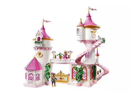 Discover exquisite details that make the castle a masterpiece of design and enchantment. Marvel at the spiral staircases, pointed towers, and decorative accents that adorn every room. The elegant thrones and shining chandelier in the grand hall create a refined atmosphere, while floral arrangements add charm and grace. Every element is crafted to inspire wonder and ignite royals' imagination in every magical play session.