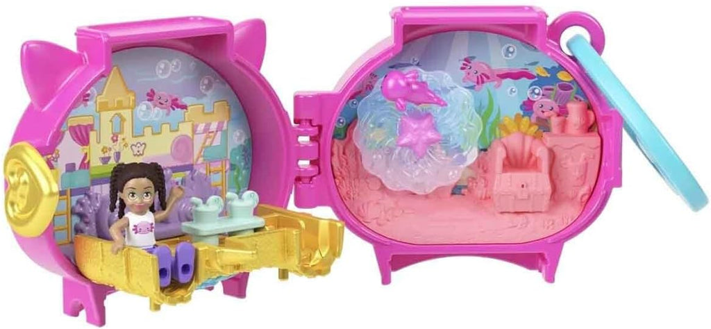 The compact Polly Pocket Compact Mini World of Pets stack for fun playing. Each portable toy is shaped like an adorable little animal on the outside, which opens to make way for an animal-themed adventure inside. A micro doll, an animal figure, storytelling accessory and other kid-activated functions fill the playset and spark imagination. Kids can collect them all and stack them to build a bigger world. Heart shaped clips clip to backpacks and other accessories to take compacts everywhere. They'll have fun anytime, anywhere, the Polly Compacts are ideal for ages 4 and up.