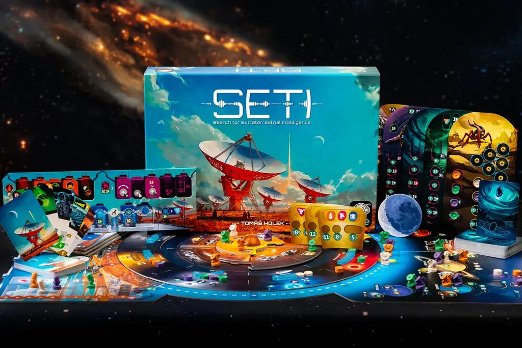 Lead a scientific institution tasked with searching for traces of life beyond planet Earth in SETI: Search for Extraterrestrial Intelligence, a eurogame for 1–4 players inspired by existing or emerging technologies and efforts in space exploration.