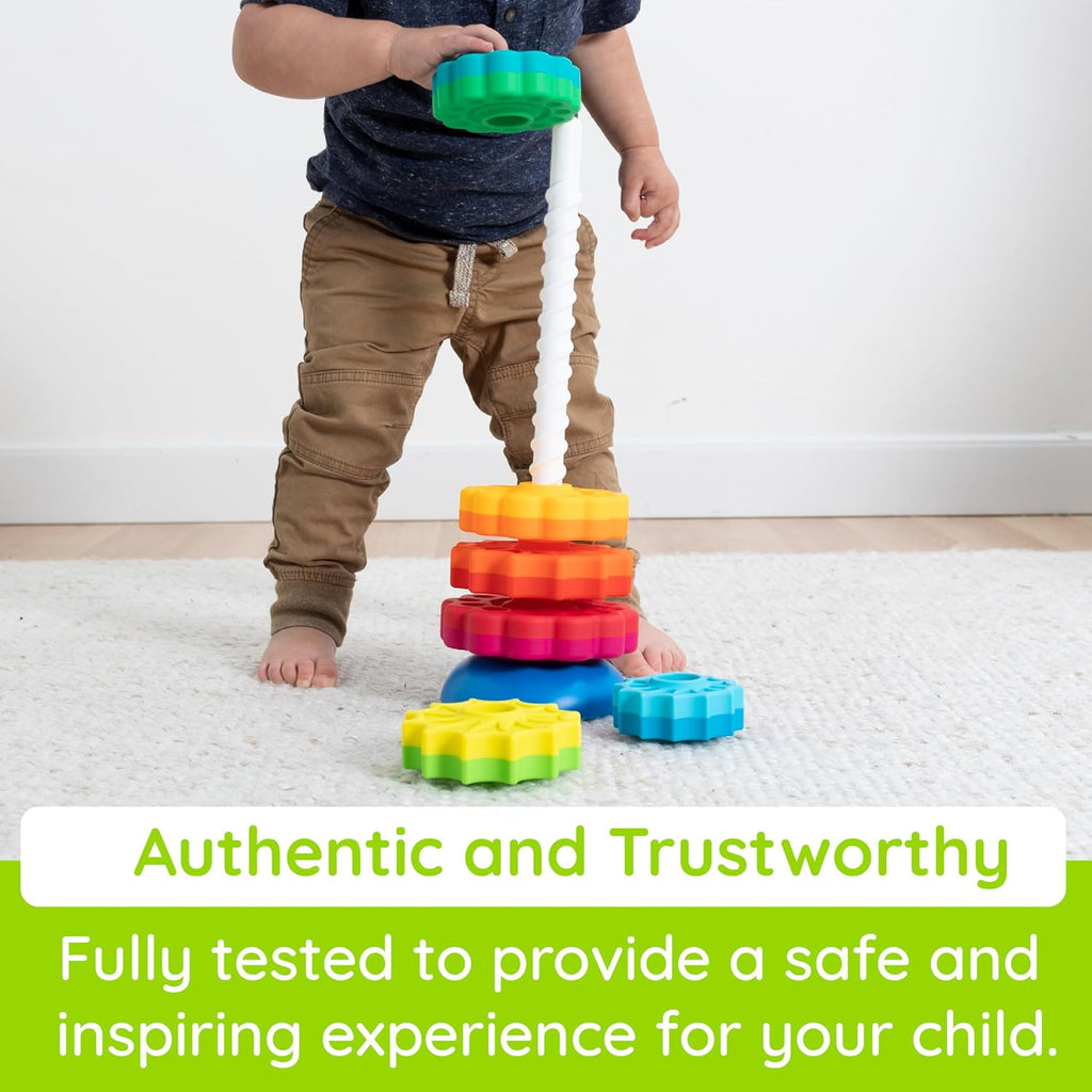 Spin Again is the first stacking and spinning toy, made up of 8 pieces of safe and high-quality ABS plastic that is easy to clean and keep disinfected, and stands 16 inches tall. Let their baby engineering skills get to work and let them be amazed again and again as they try out different colour combinations or simply let the fun, smooth to the touch gears spin around and around again and again.