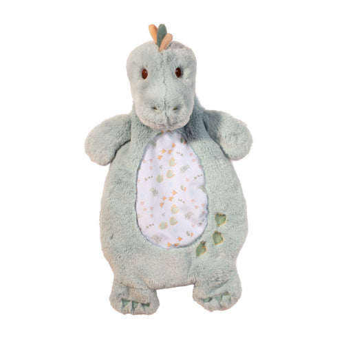 Snuggle up with all the wonders of the Jurassic world with Danny the plush Dino Sshlumpie! Our adorable baby dinosaur has been crafted in scrumptiously soft materials that will keep Baby coming back for more hugs! Gentle, earthy tones can be found throughout Danny’s design, from the playful print of dino tracks and prehistoric plants on his tummy to the small crest atop his head. Embroidered facial details and a little trail of footprints alongside Danny’s belly are baby-safe and add a dash of whimsy to his design. Lightweight and easily packable, it’s easy to keep Danny close at hand no matter the adventure! Mix and match other accessories from our Danny Dino collection to put together a custom set to give as a gift or keep for your own nursery!