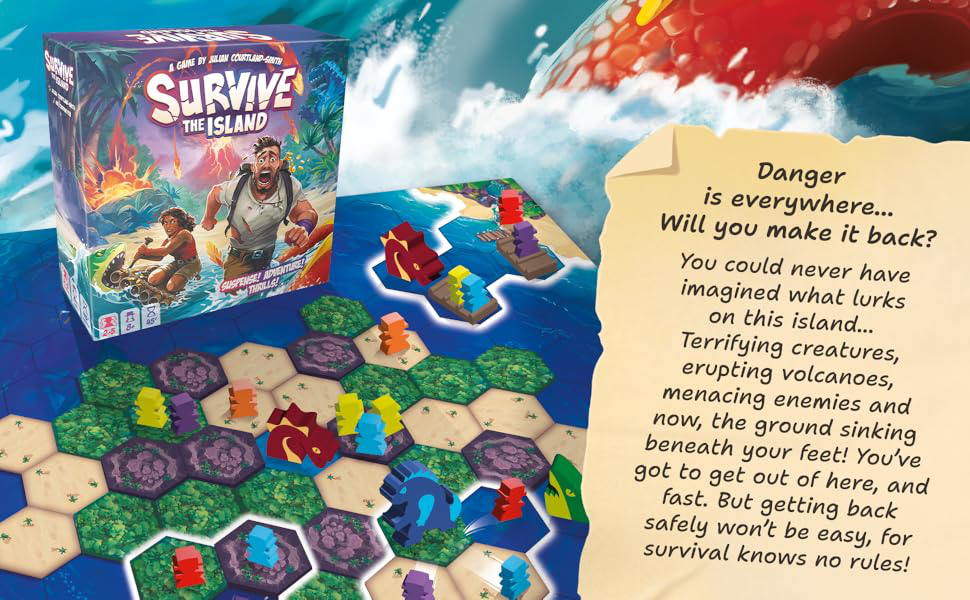 - STRATEGIC GAME OF RISK AND REWARD: Players must balance the pursuit of treasure with their survival instincts, making strategic decisions that could either aid their escape or doom them to the island’s fate.