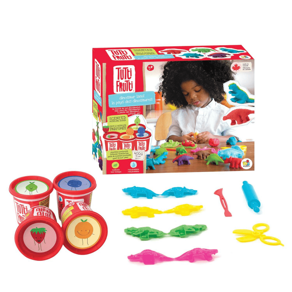 It also contains 4 dinosaur molds, putty-scissors, a mini-rolling pin and a shaping tool.